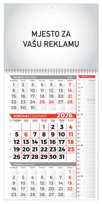Ulazimo u završnicu 2025. godine, a to znači da dolazi sezona poslovnih poklona. I ove godine imamo u ponudi naš poznati trodijelni zidni kalendar MEMO koji su brojni naši kupci prepoznali kao kvalitetan i funkcionalan poklon.